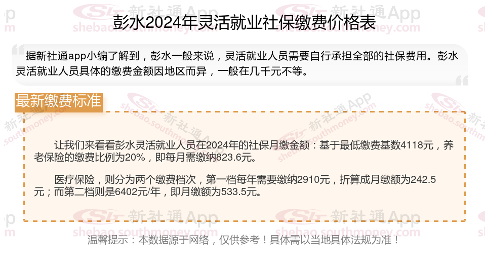 二、彭水2024年灵活就业社保缴费基数及比例