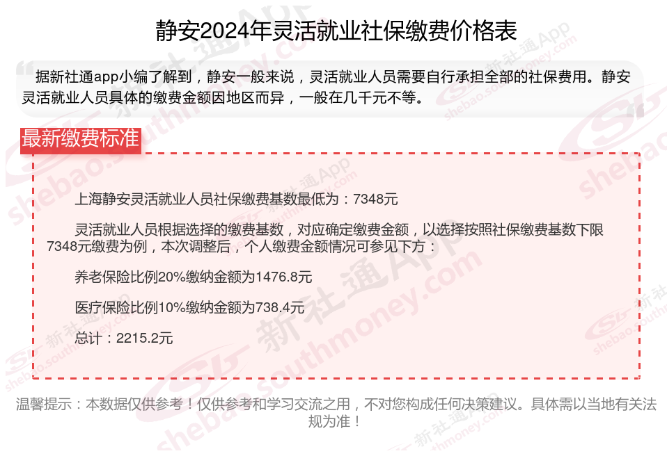 一、2024年静安灵活就业社保缴费标准表 静安灵活就业社保多少钱一个月?