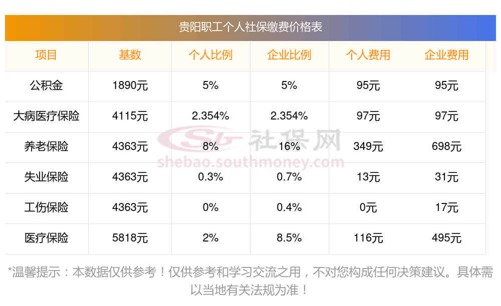据新社通app显示,贵阳社保缴费基数2023-2024年最新消息,贵阳职工社保缴费详情如下: