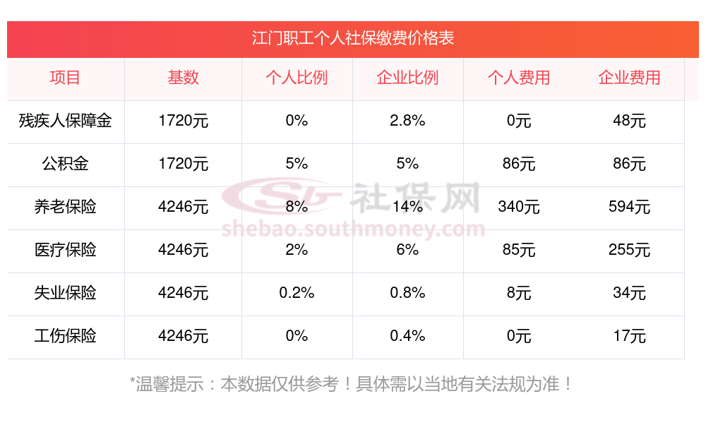 一、江门职工社保缴费基数是多少钱一个月?职工社保缴纳标准