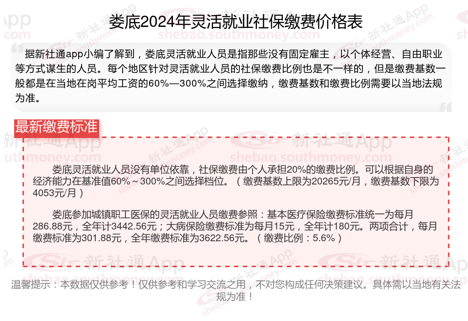 二、2024年娄底灵活就业社保缴费标准,最新如下:
