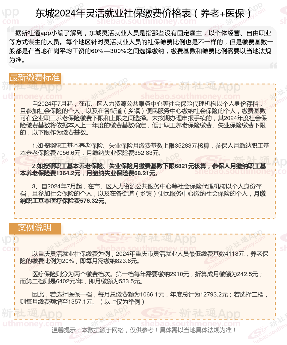 二、2024年东城灵活就业社保缴费标准表 东城灵活就业社保多少钱一个月?