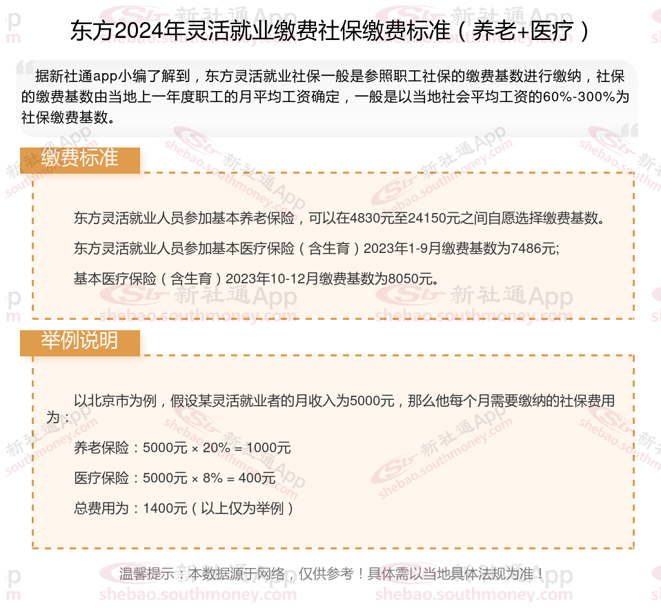 二、东方2024年灵活就业社保缴费基数及比例最新消息
