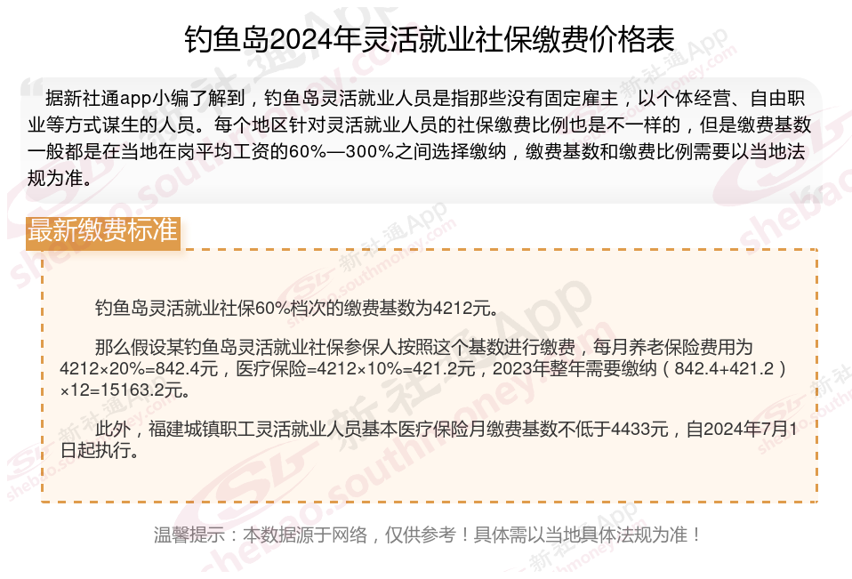 二、钓鱼岛2024年灵活就业社保缴费基数、比例最新消息
