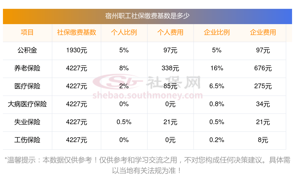据新社通app显示,宿州社保缴费基数2023-2024年标准,(社保最低一个月要交多少钱)宿州社保费用如下:
