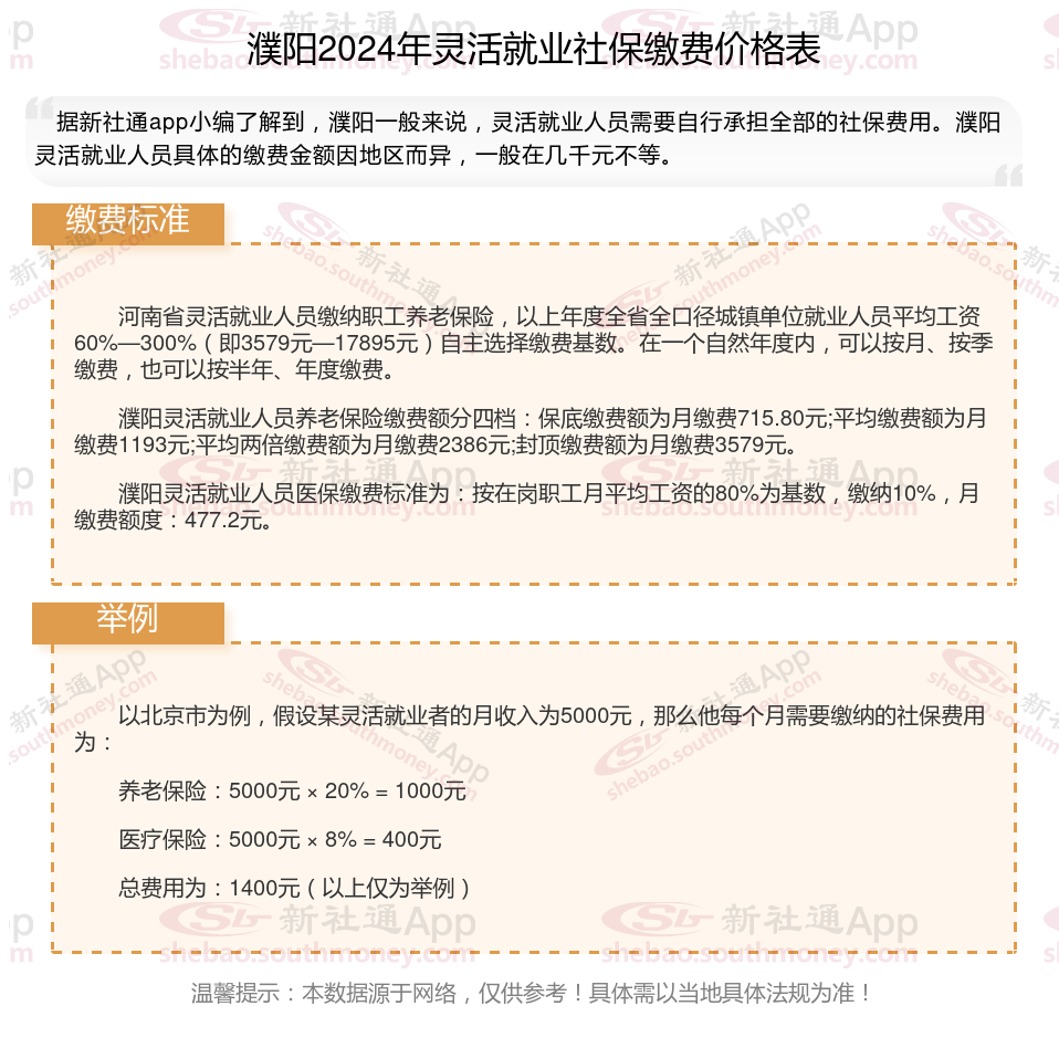 二、濮阳2024年灵活就业社保缴费基数、比例最新消息