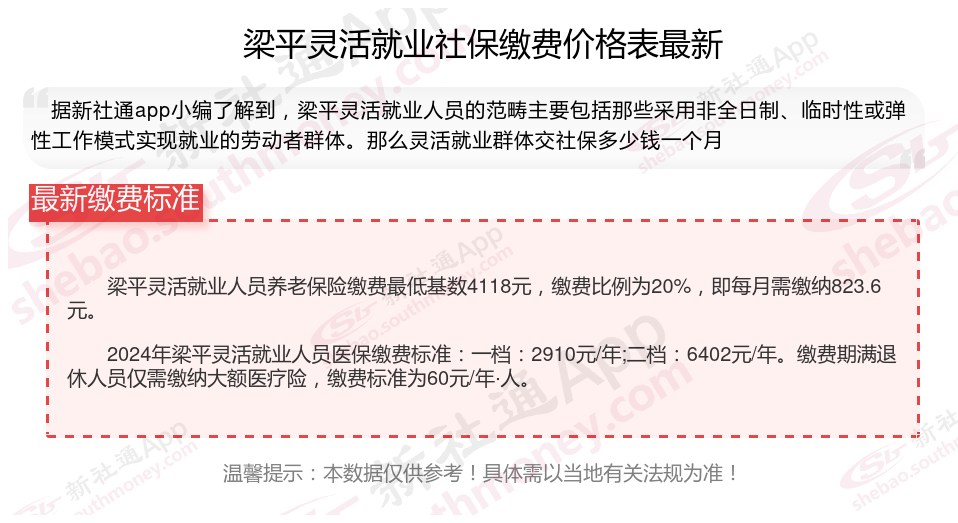 二、梁平2024年灵活就业社保缴费基数、比例最新消息