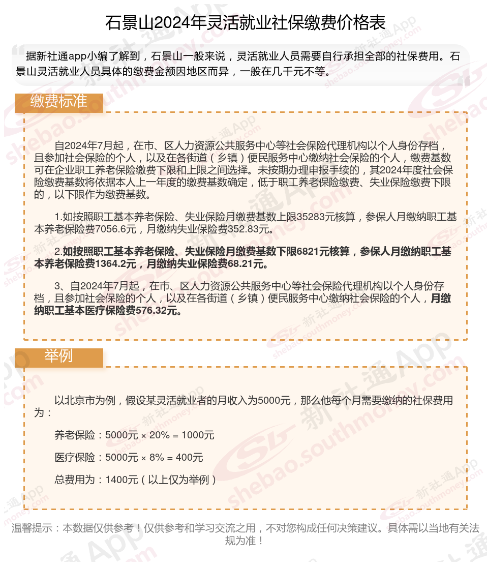 一、2024年石景山灵活就业社保缴费标准表 石景山灵活就业社保多少钱一个月?