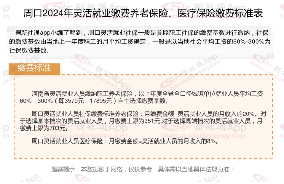 二、2024年周口灵活就业社保缴费标准表,最新如下: