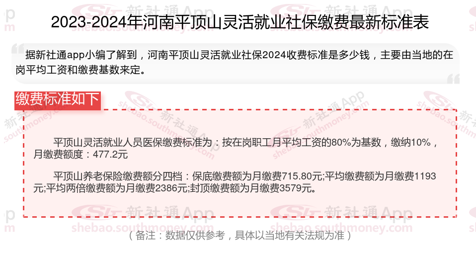 二、河南平顶山2024年灵活就业社保缴费基数、比例最新消息