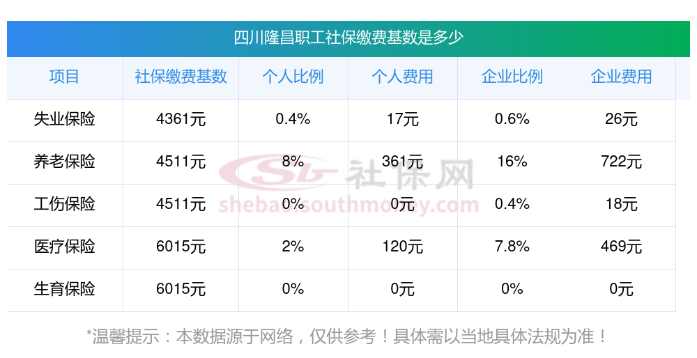 据新社通app显示,四川隆昌社保缴费基数2023-2024年标准,(社保最低一个月要交多少钱)四川隆昌社保费用如下: