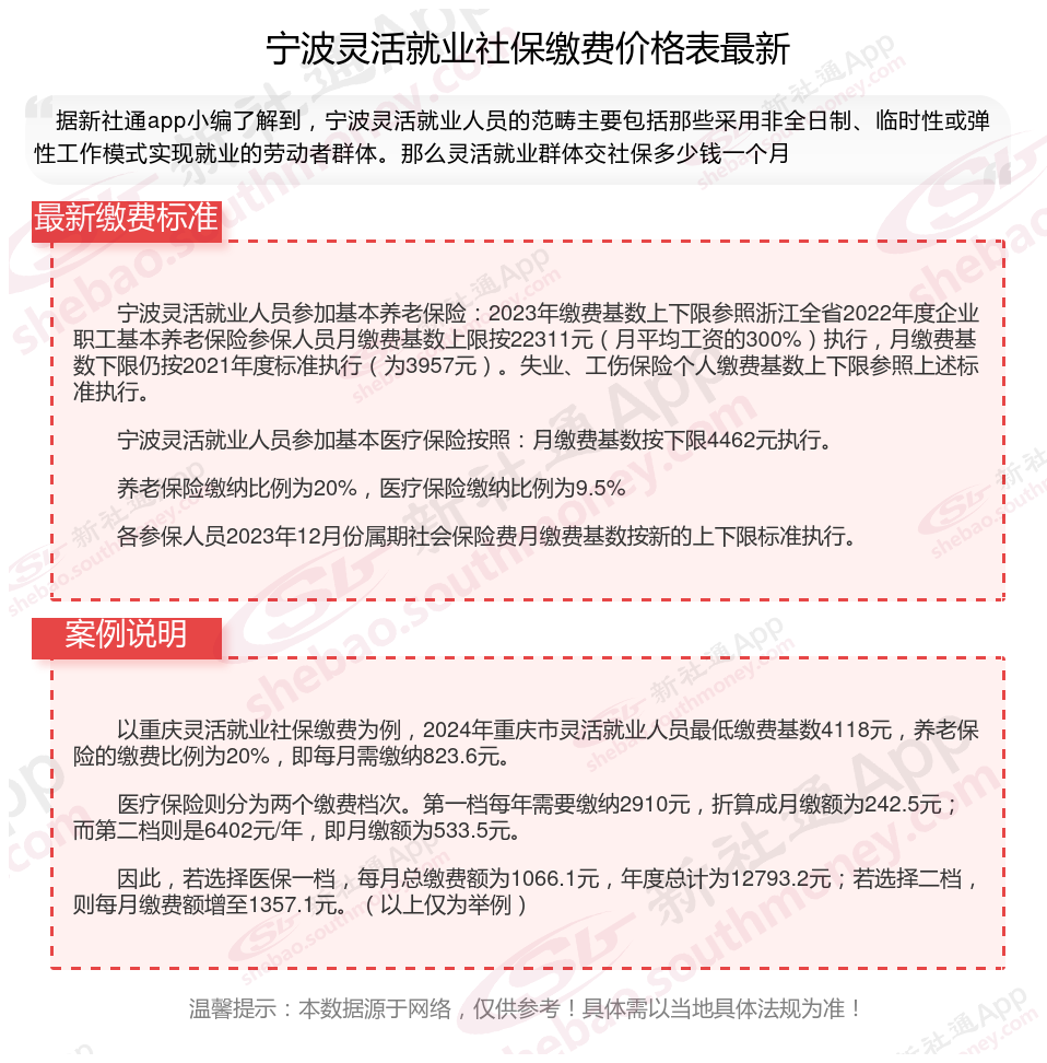 一、2024年宁波灵活就业社保缴费标准表 宁波灵活就业社保多少钱一个月?