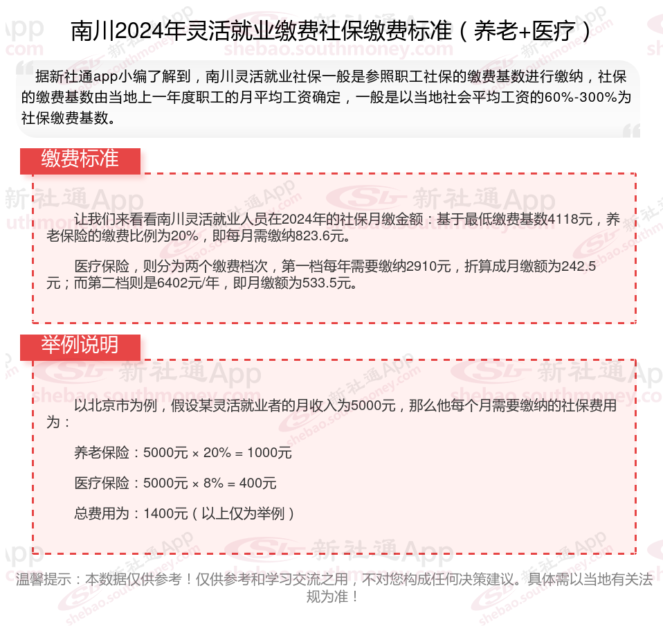 随着经济的发展和社会的进步,灵活就业人员越来越多,但是很多人不知道如何缴纳社保。本文将介绍2024年南川灵活就业人员社保缴费基数及如何缴纳社保,能领取多少钱,帮助大家更好地了解灵活就业社保,随着新社通APP小编一起了解南川灵活就业社保缴费最新资讯吧。
