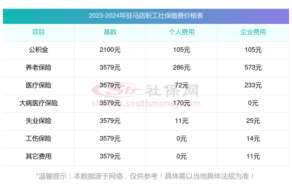 据新社通app显示,驻马店社保缴费基数2023-2024年标准,(社保最低一个月要交多少钱)驻马店社保费用如下: