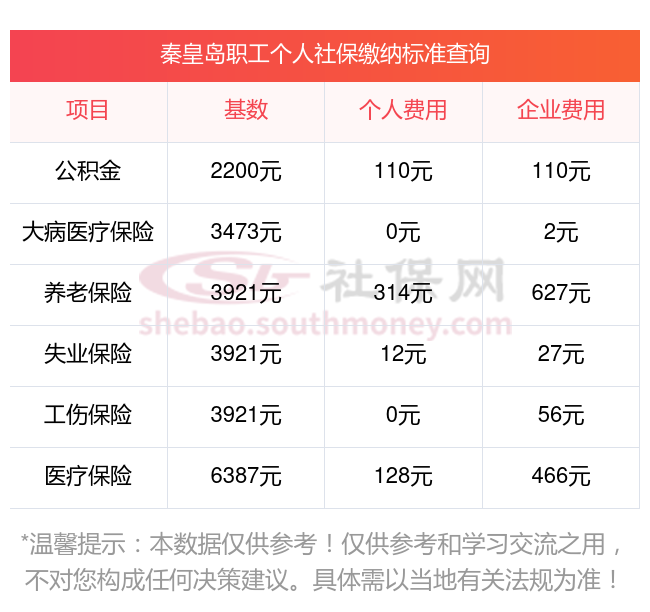 据新社通app显示,秦皇岛社保缴费基数2023-2024年最新标准如下: