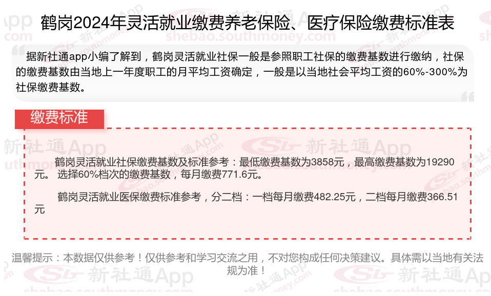二、鹤岗2024年灵活就业社保缴费基数、比例最新消息