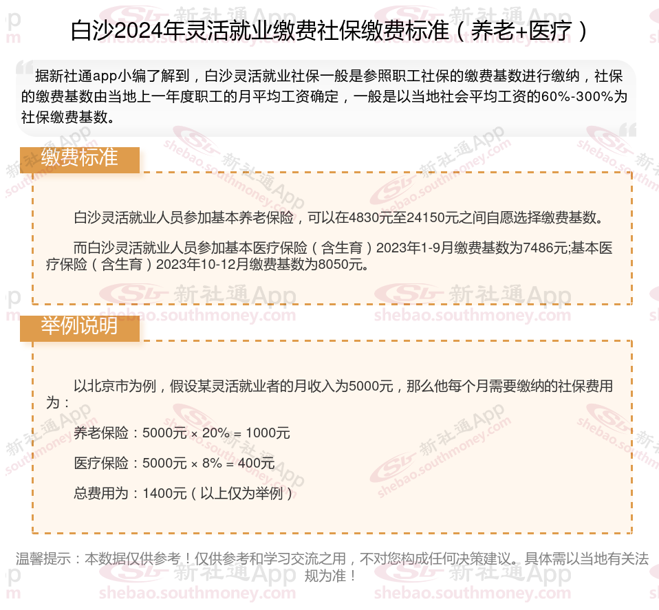 一、2024年白沙灵活就业社保缴费基数、比例最新消息