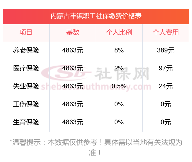 据新社通app显示,内蒙古丰镇社保缴费基数2023-2024年最新消息,内蒙古丰镇职工社保缴费详情如下: