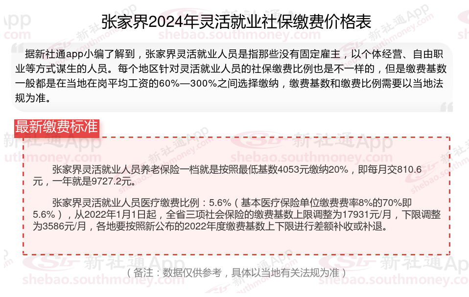 二、2024年张家界灵活就业社保缴费标准,最新如下: