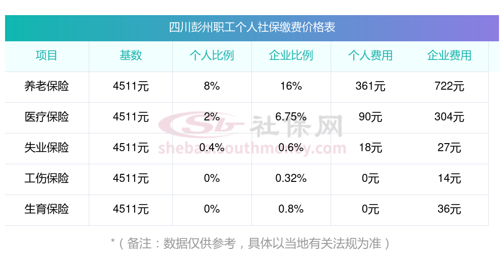 据新社通app显示,四川彭州社保缴费基数2023-2024年标准,(社保最低一个月要交多少钱)四川彭州社保费用如下: