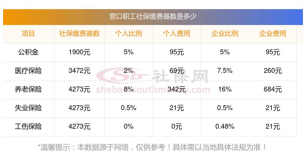 二、营口职工社保缴费基数是多少钱一个月?职工社保缴纳标准是多少?