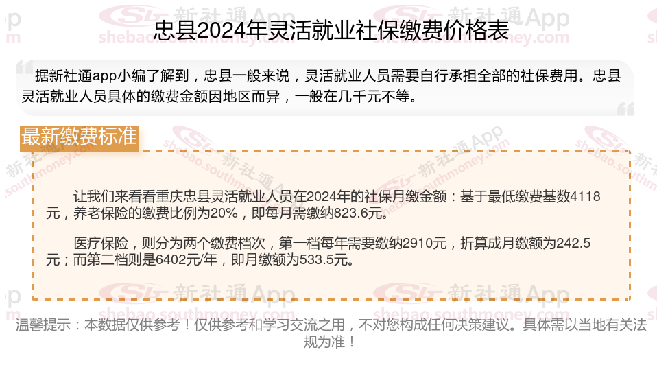 二、忠县2024年灵活就业社保缴费基数及比例最新消息