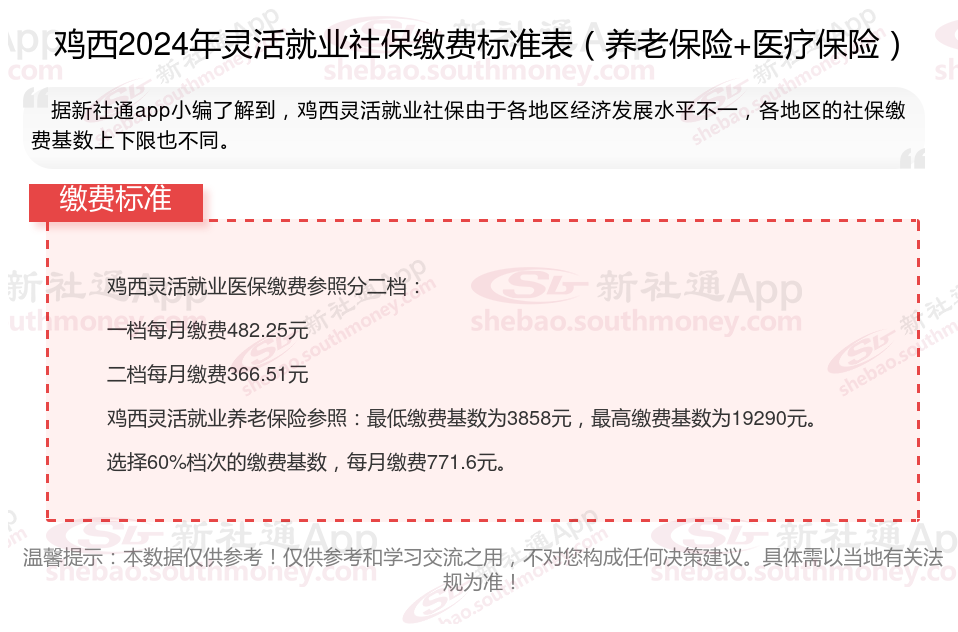 二、鸡西2024年灵活就业社保缴费基数、比例最新消息
