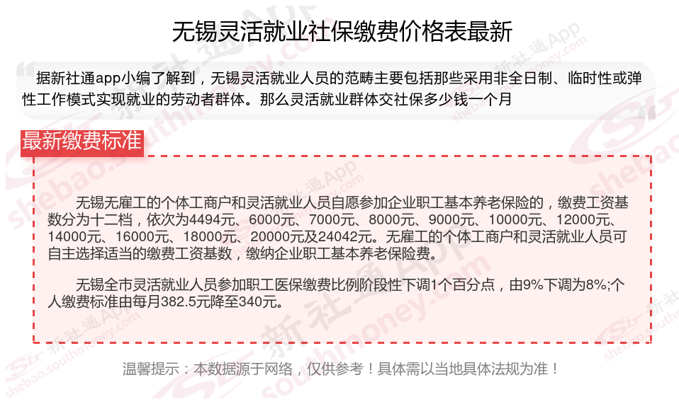 一、2024年无锡灵活就业社保缴费标准表 无锡灵活就业社保多少钱一个月?