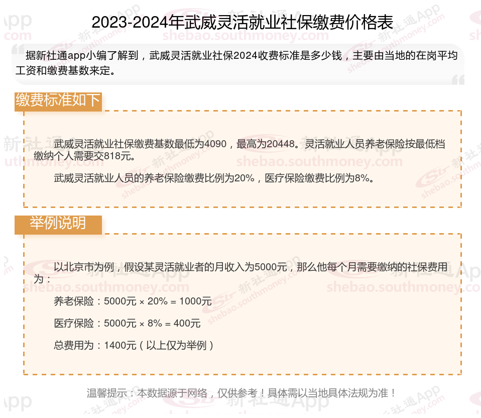 二、2024年武威灵活就业社保缴费标准,最新如下: