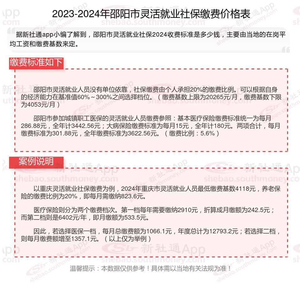 一、2024年邵阳市灵活就业社保缴费标准表 邵阳市灵活就业社保多少钱一个月?