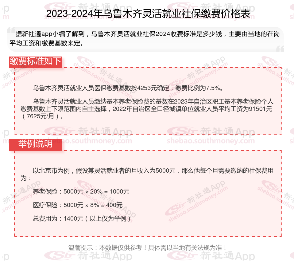 二、乌鲁木齐2024年灵活就业社保缴费基数、比例最新消息