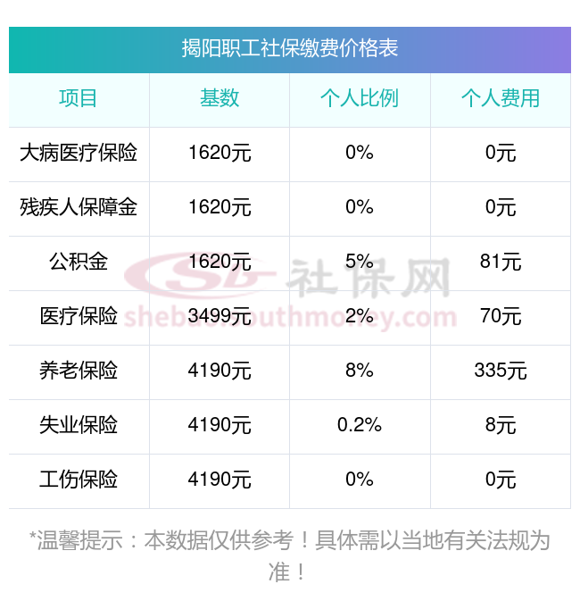 二、揭阳职工社保缴费基数是多少钱一个月?职工社保缴纳标准是多少?