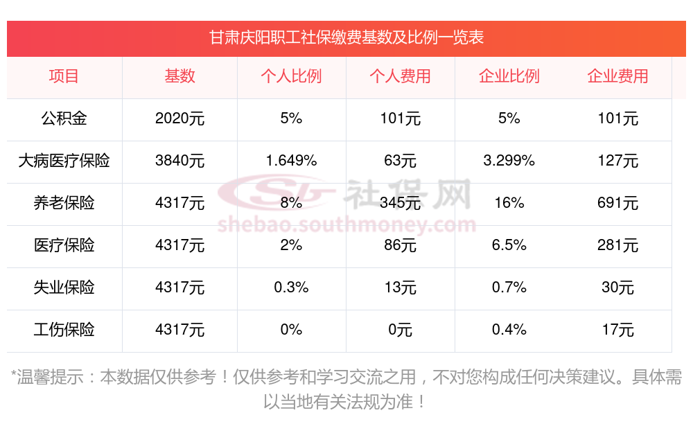 据新社通app显示,甘肃庆阳社保缴费基数2023-2024年最新消息,甘肃庆阳职工社保缴费详情如下: