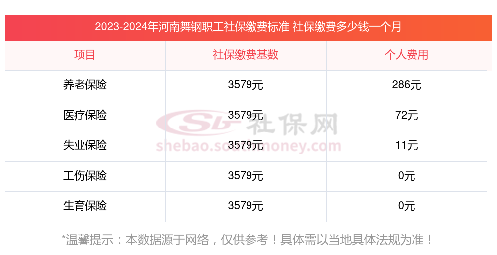 据新社通app显示,河南舞钢社保缴费基数2023-2024年标准,(社保最低一个月要交多少钱)河南舞钢社保费用如下: