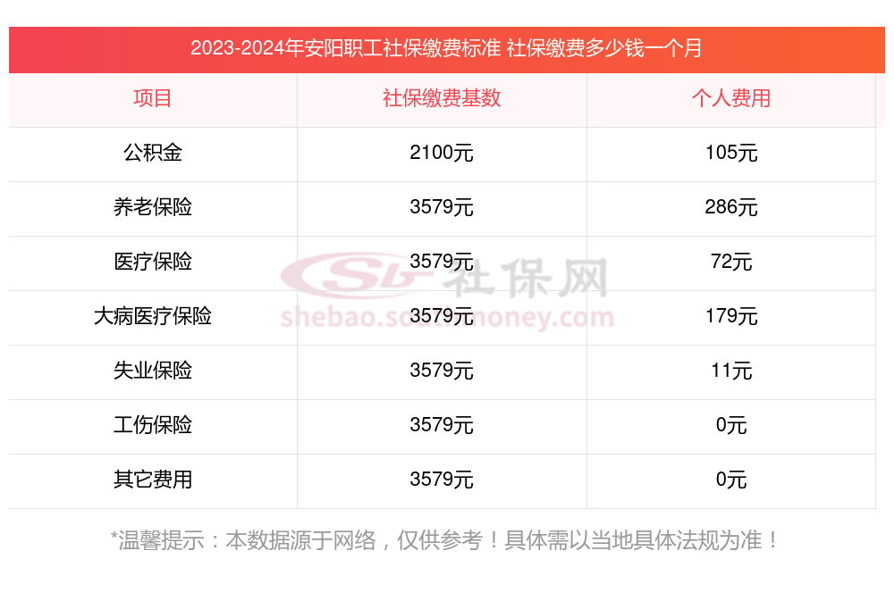 一、安阳职工社保缴费多少钱?安阳职工社保缴费基数最新参考为:3579.00,具体如下: