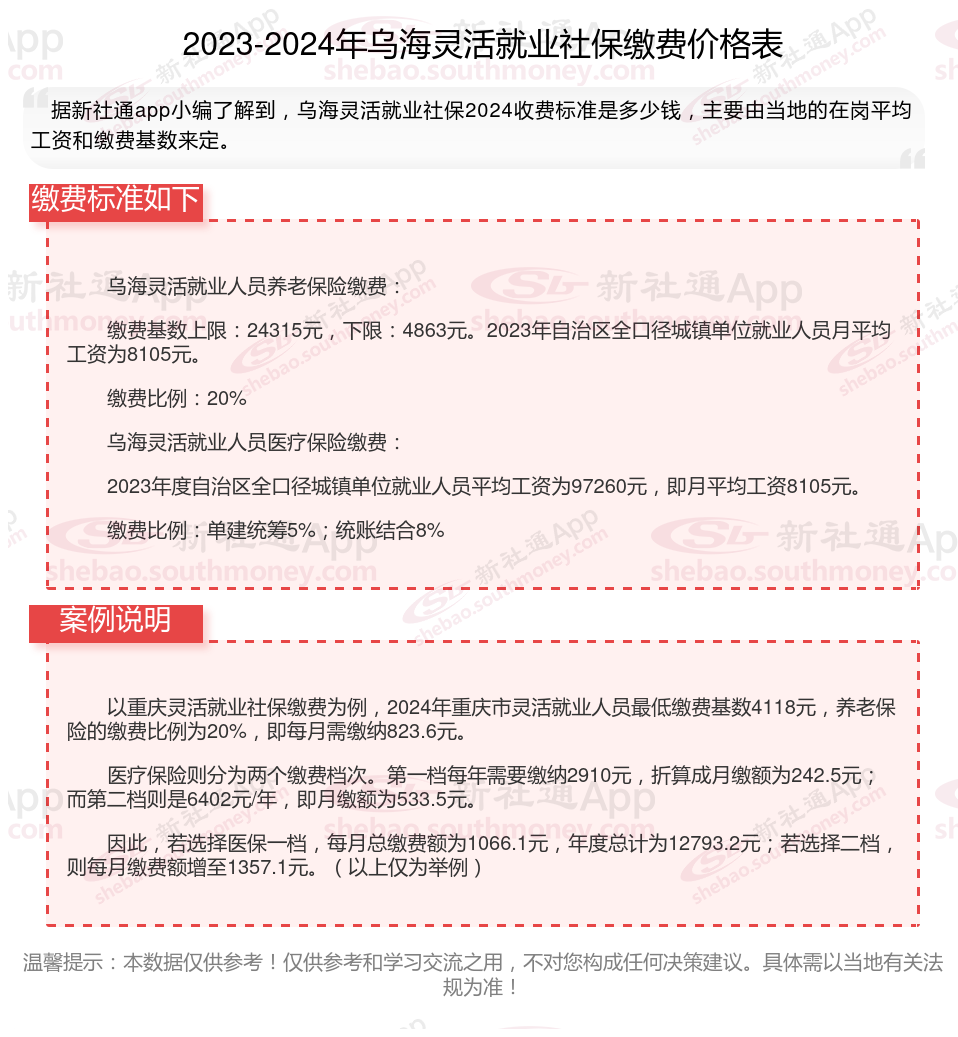 一、2024年乌海灵活就业社保缴费标准表 乌海灵活就业社保多少钱一个月?