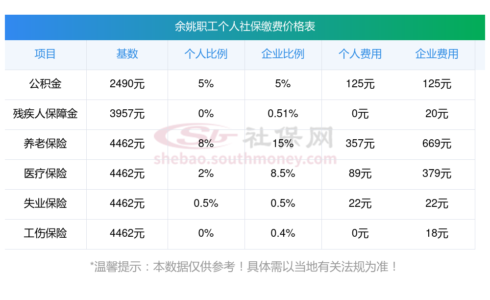 一、余姚职工社保缴费基数是多少钱一个月?职工社保缴纳标准是多少?