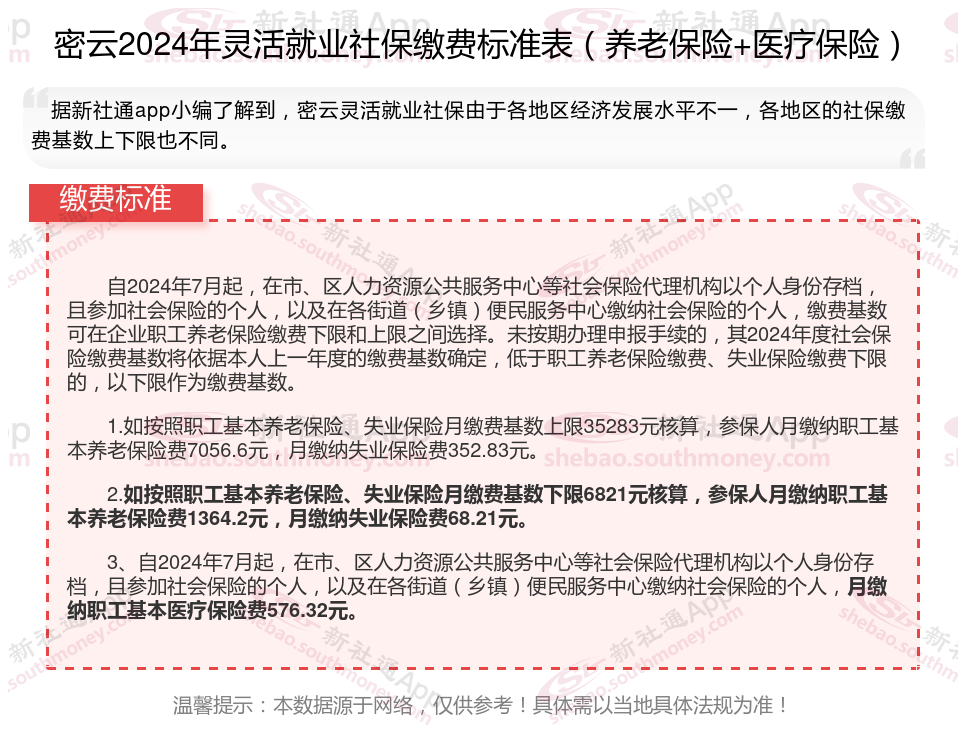 一、2024年密云灵活就业社保缴费标准表 密云灵活就业社保多少钱一个月?