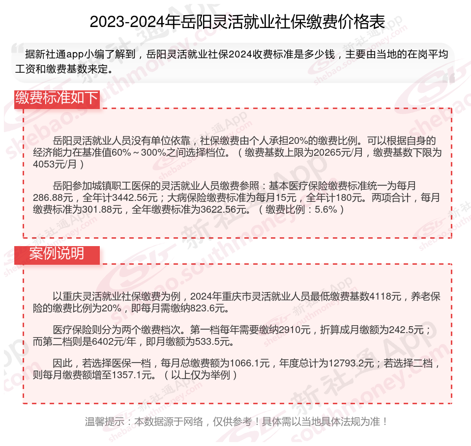 一、2024年岳阳灵活就业社保缴费基数、比例最新消息