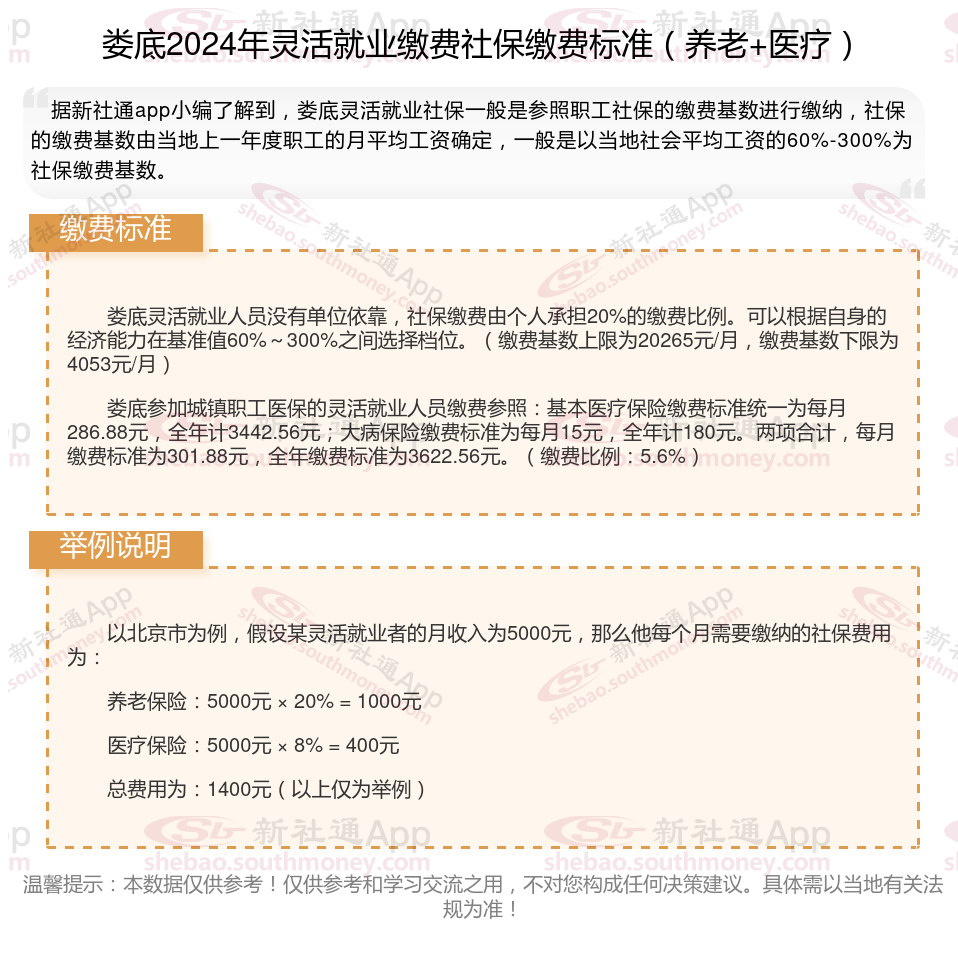一、2024年娄底灵活就业社保缴费标准表 娄底灵活就业社保多少钱一个月?