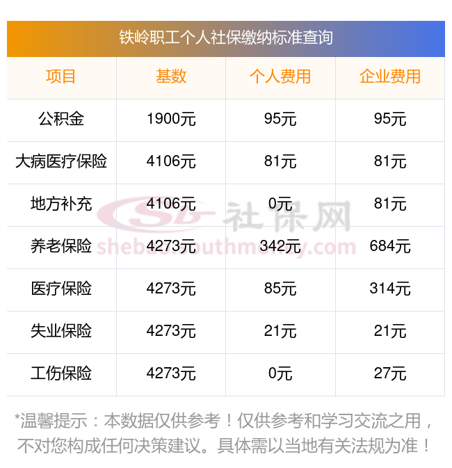 铁岭职工社保缴费多少钱?铁岭职工社保缴费基数最新参考为:3579.00,具体如下: