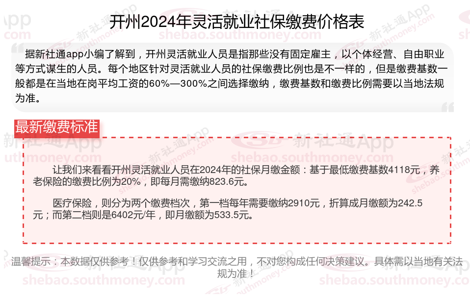 二、2024年开州灵活就业社保缴费标准表 开州灵活就业社保怎么交?