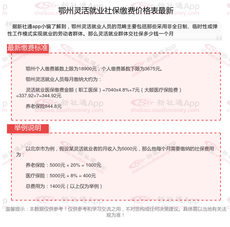 二、鄂州2024年灵活就业社保缴费基数、比例最新消息