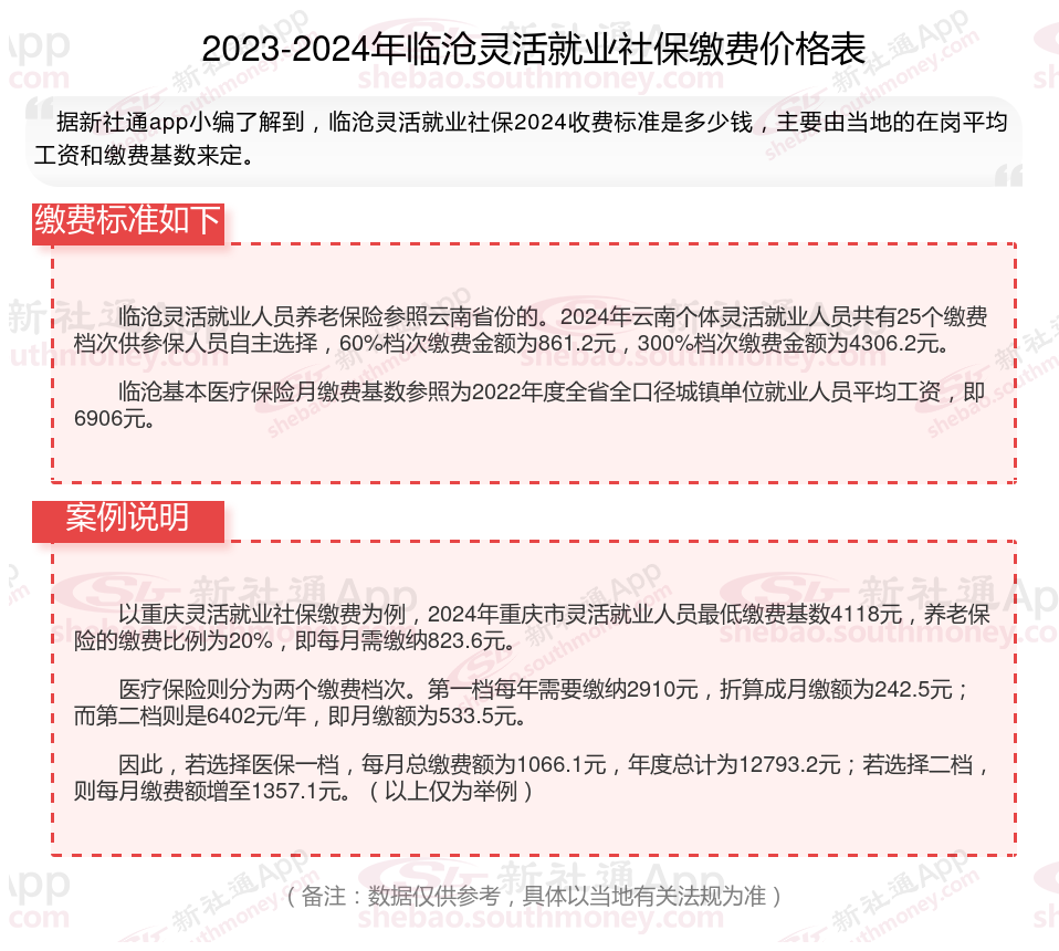 一、2024年临沧灵活就业社保缴费基数、比例最新消息
