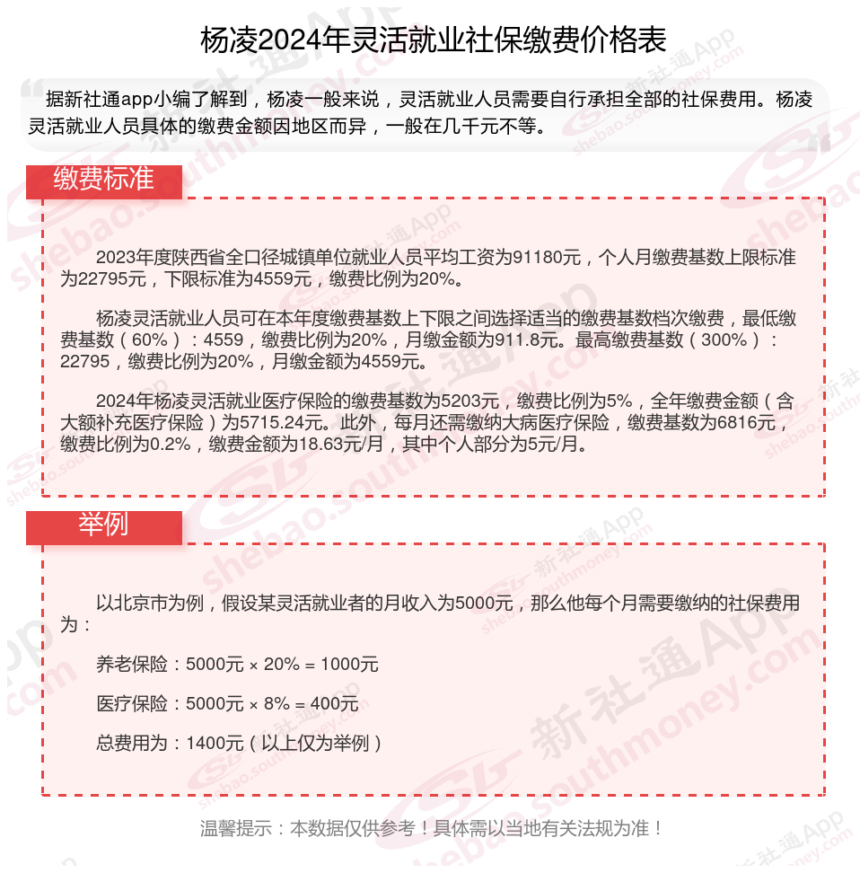 二、杨凌2024年灵活就业社保缴费基数、比例最新消息
