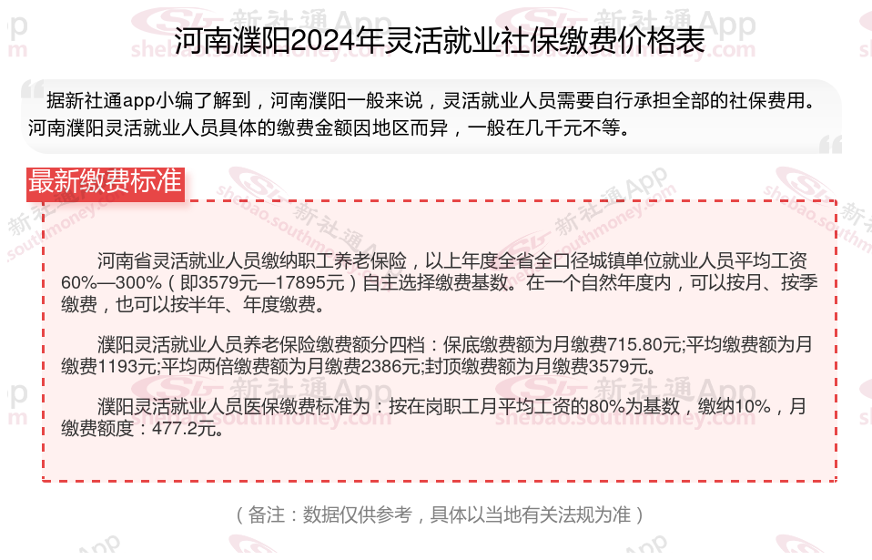 二、河南濮阳2024年灵活就业社保缴费基数及比例