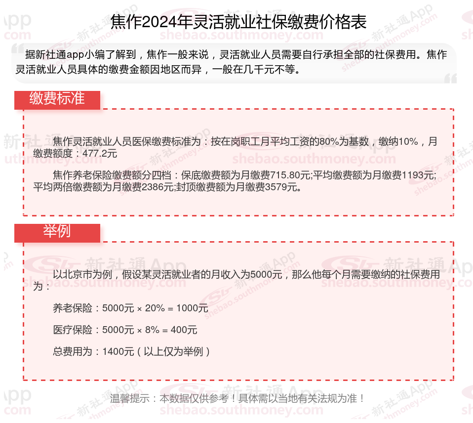 二、焦作2024年灵活就业社保缴费基数、比例最新消息