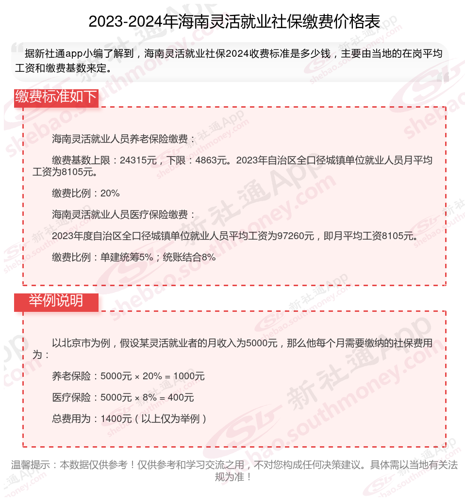 二、海南2024年灵活就业社保缴费基数及比例最新消息