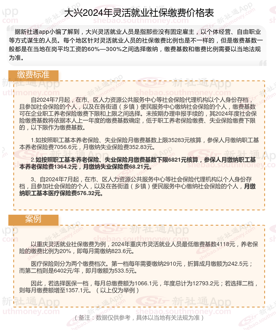 二、2024年大兴灵活就业社保缴费标准是多少钱,最新如下: