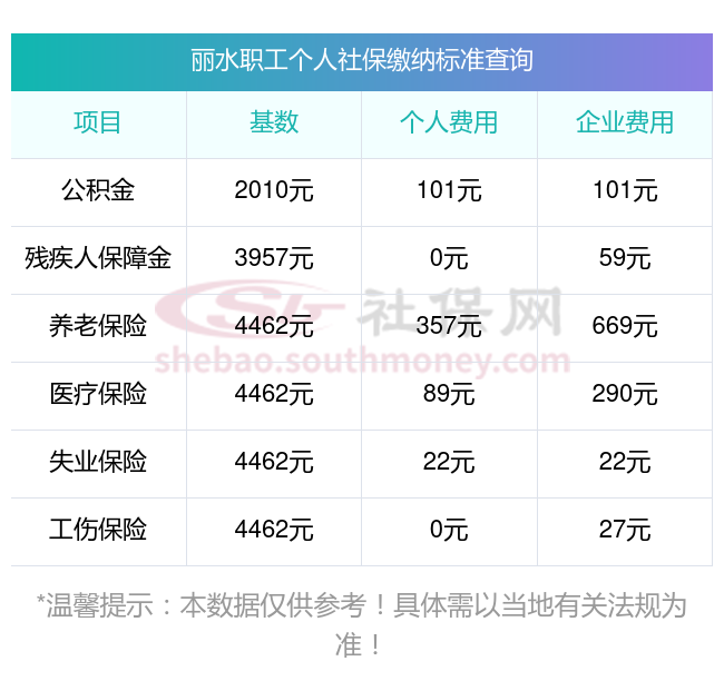 2024年丽水社保缴费多少钱?下表是2023-2024年丽水社保费用明细参考,新社通app-社保缴费查询工具提供的最新数据如下: